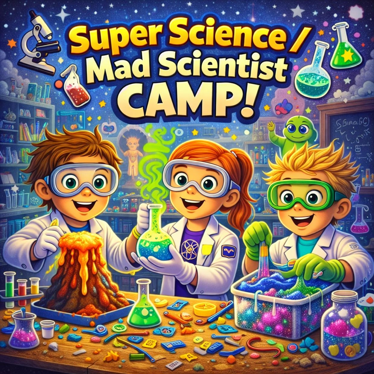 Super Science / Mad Scientist Camp Get ready to mix, create, and experiment! Campers will conduct exciting experiments, build bubbling volcanoes, craft their own slime, and explore the wonders of science. Unleash your curiosity, solve hands-on challenges, and discover the scientist within you this Summer!